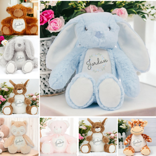 Introducing our delightful  My First Easter Plush Soft Toy, perfect for celebrating those special moments like Baby’s 1st Easter. Crafted from the finest 100% Polyester plush fabric, each toy is approximately 22-26cm in size, making them the ideal cuddly companions for little ones. Whether you’re searching for Easter Gifts for boys, girls, or simply to commemorate Baby’s 1st Easter, our Custom Plush Toys and Custom Soft Toys are the perfect choice. With the option to personalise each toy with perferred name, they become more than just gifts; they become cherished Keepsake Gifts, capturing the joy and memories of the occasion. Our Personalised Teddy Bears are soft, cuddly, and brimming with Easter charm, ready to bring smiles to children’s faces and warmth to their hearts. Whether it’s for a baby’s first Easter or as a special gift for a child, these Soft Cuddly Toys are sure to be treasured for years to come. Celebrate Easter with our range of Personalised Gifts, designed to make the holiday even more memorable. From adorable bunnies to customizable plush toys, each item is crafted with care and attention to detail, ensuring a truly unique and heartfelt Easter gift-giving experience.