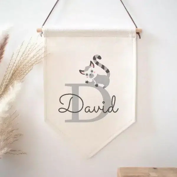 Introducing your very own Personalised ‘Lemur and Initial’ Linen Flag, a bespoke masterpiece that captures the essence of your unique identity. Crafted with precision and care, this exquisite flag is a celebration of your individuality and personal style.