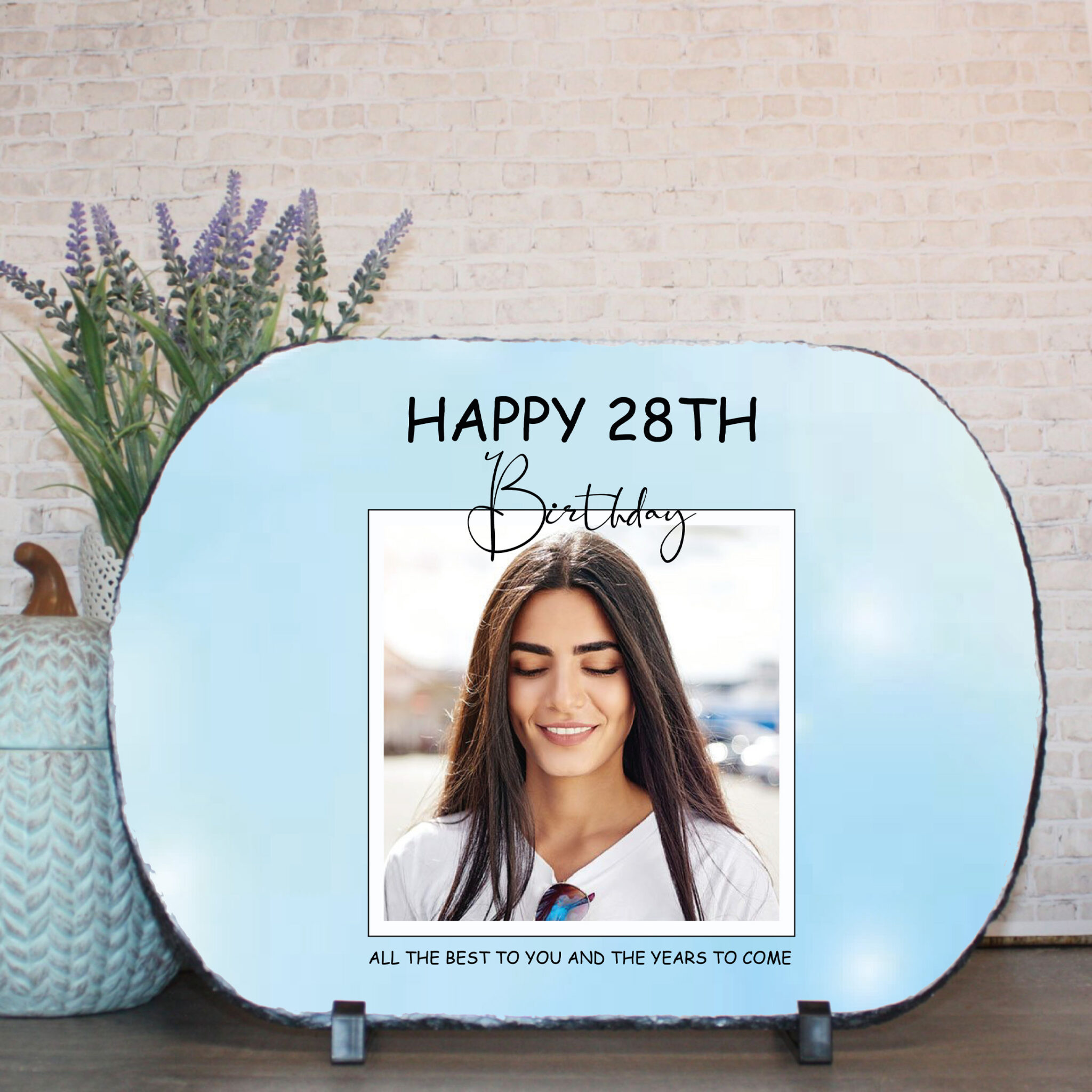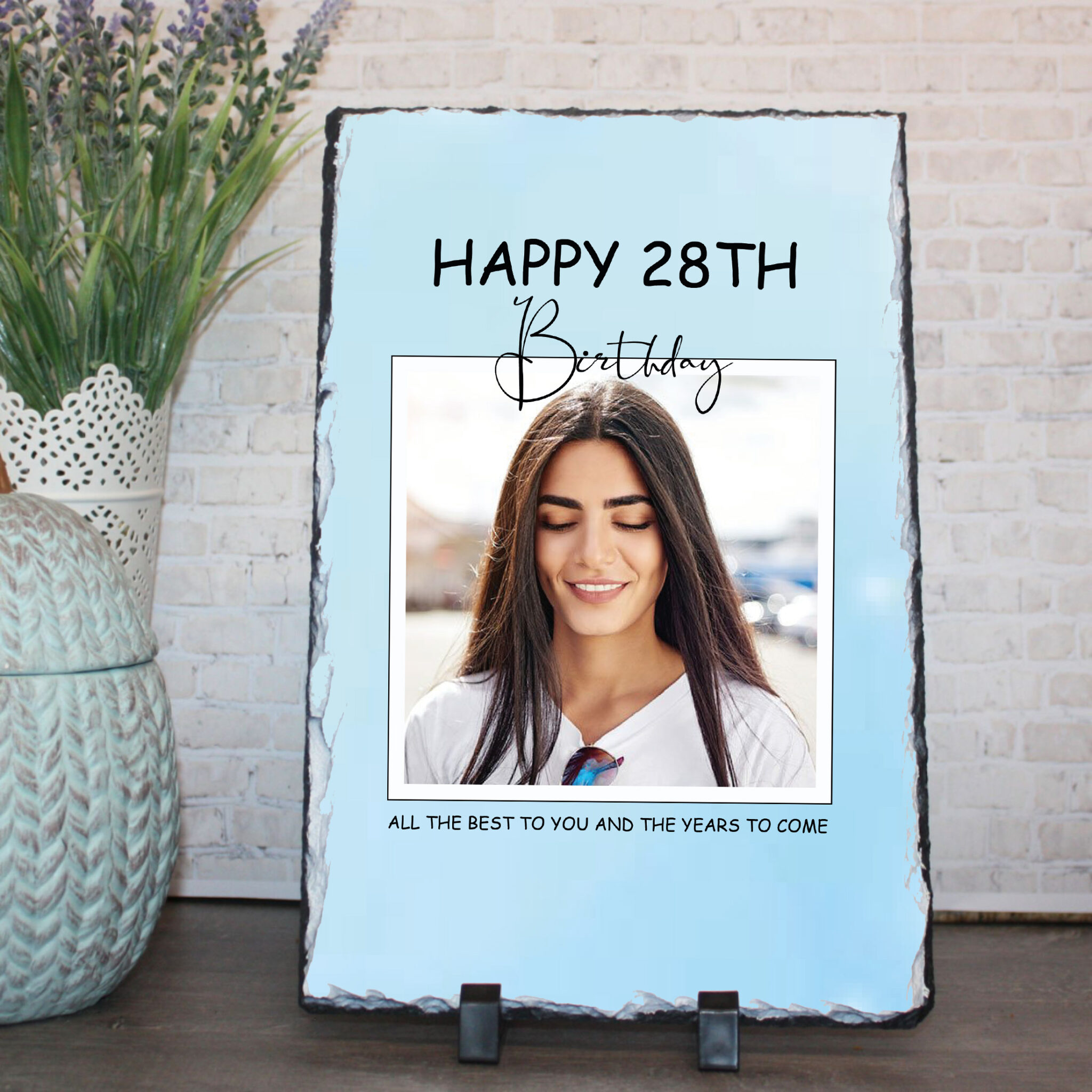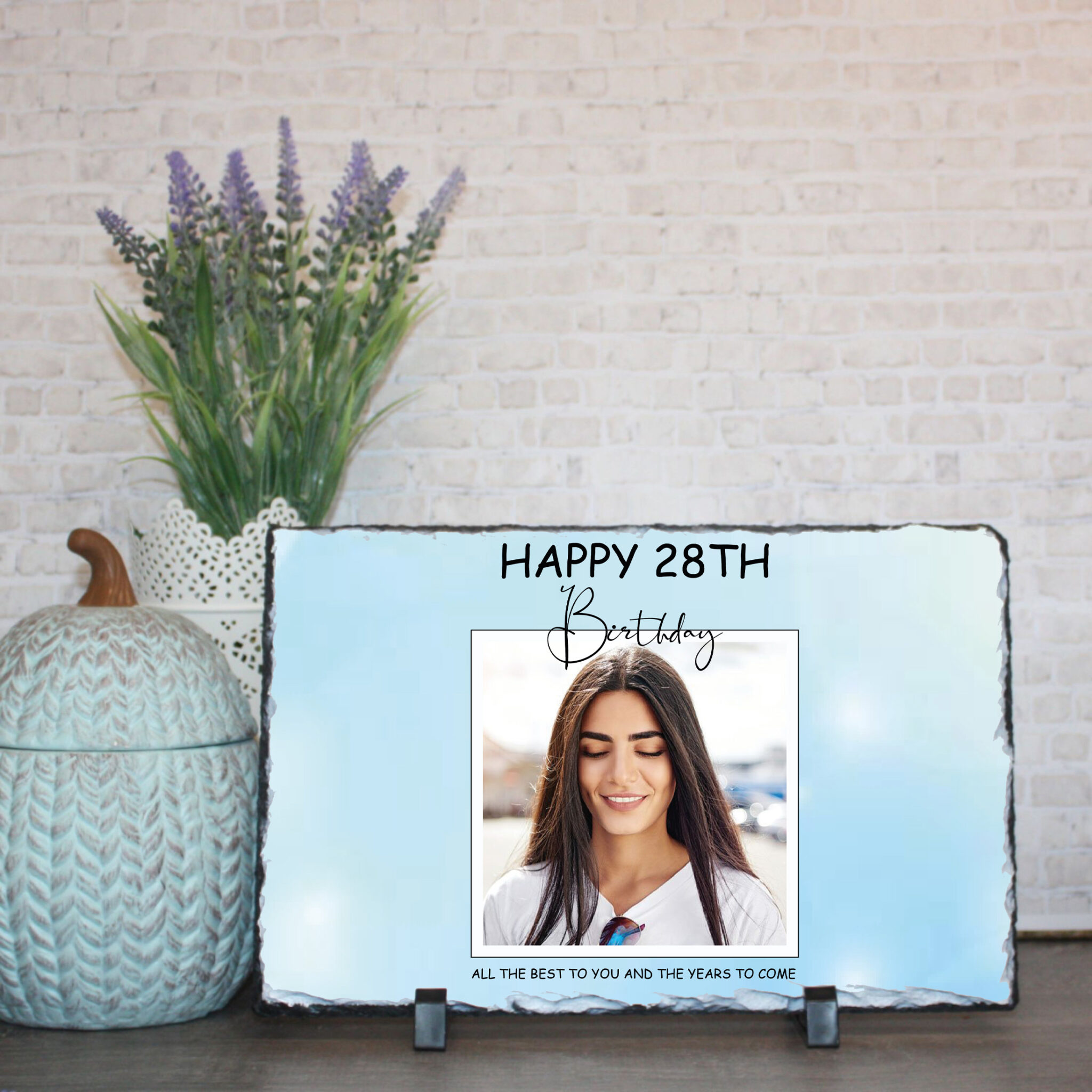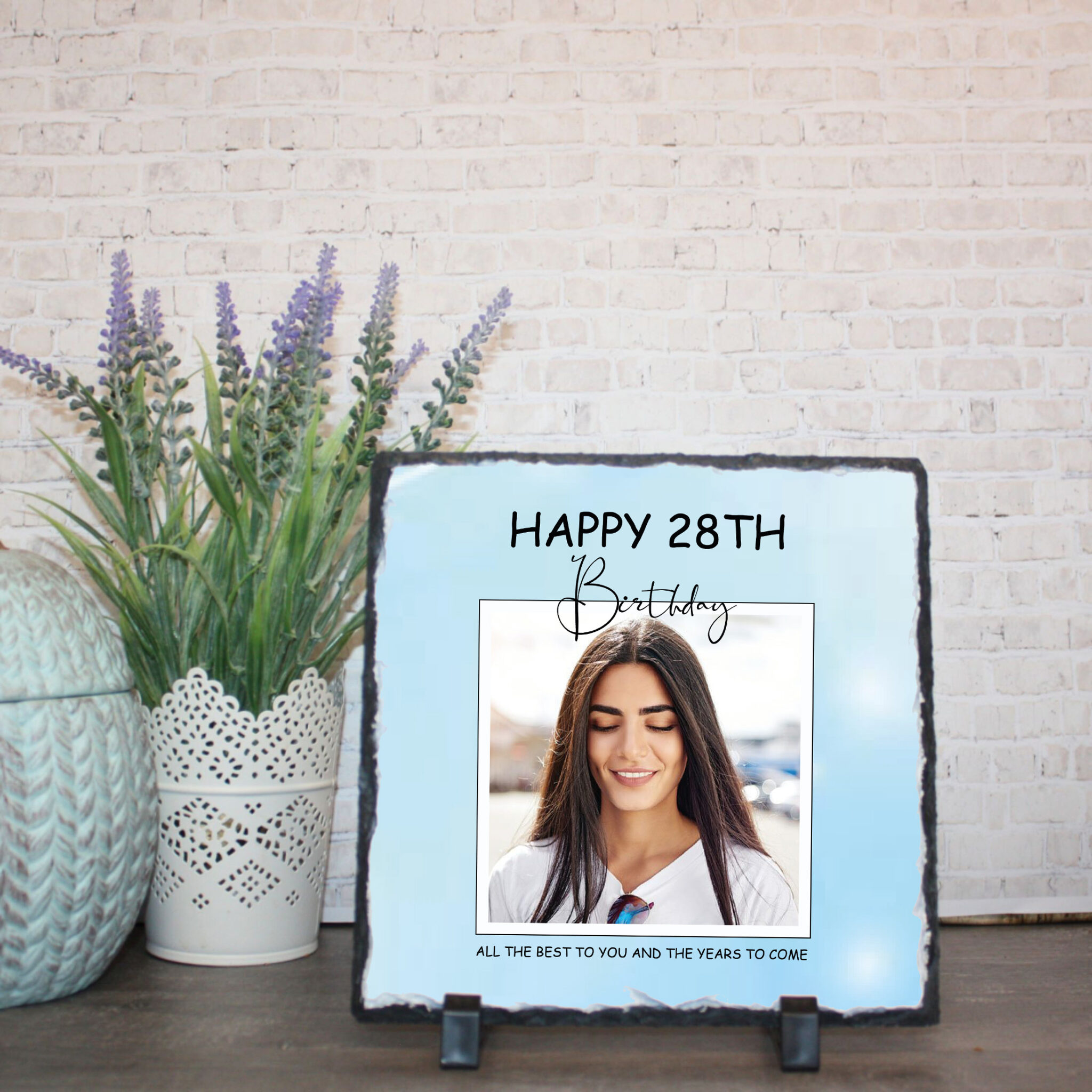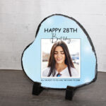 Discover our Personalised Photo Slate, a delightful Custom Gift designed to celebrate birthdays in style! This elegant Decorative Plaque features a rectangular space where your personalised photo takes center stage. Above the photo, the caption ‘Happy [Number] Birthday’ adds a joyful touch, customisable to feature the age being celebrated.