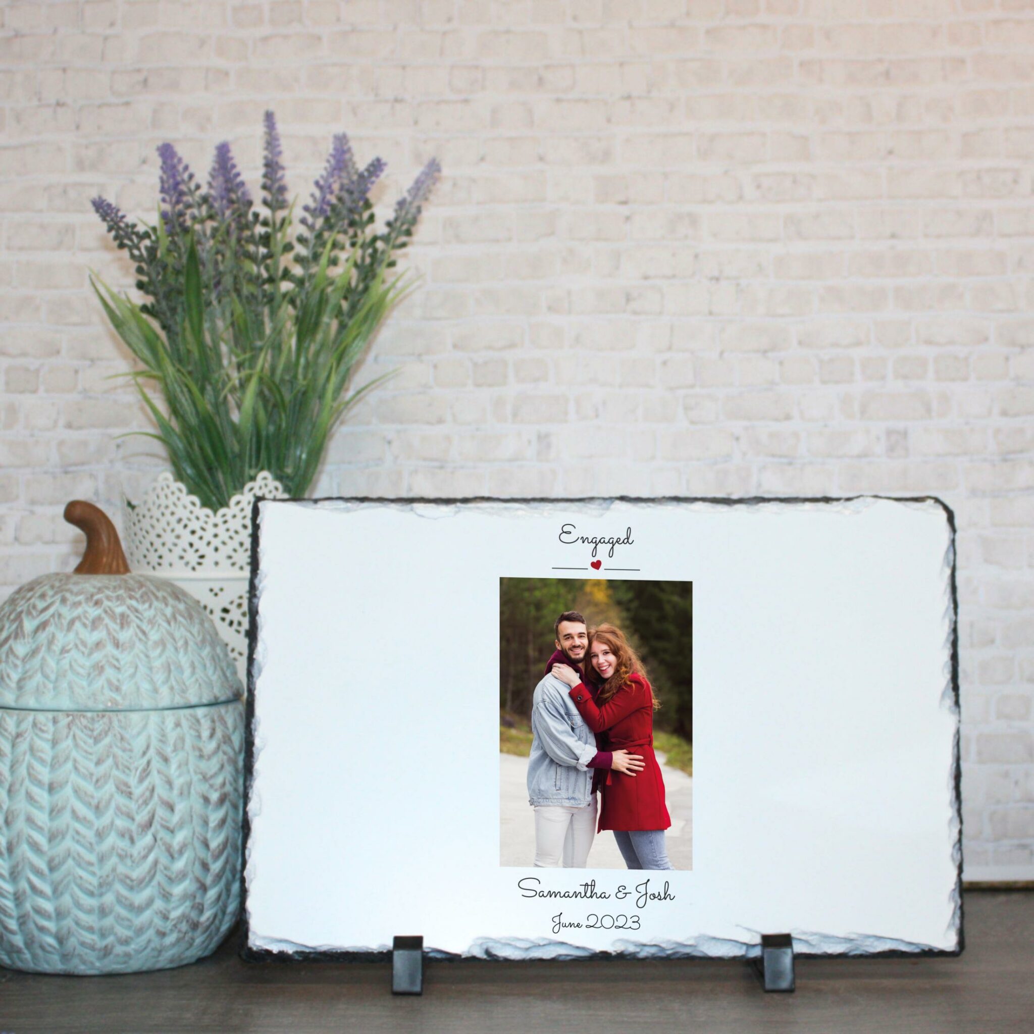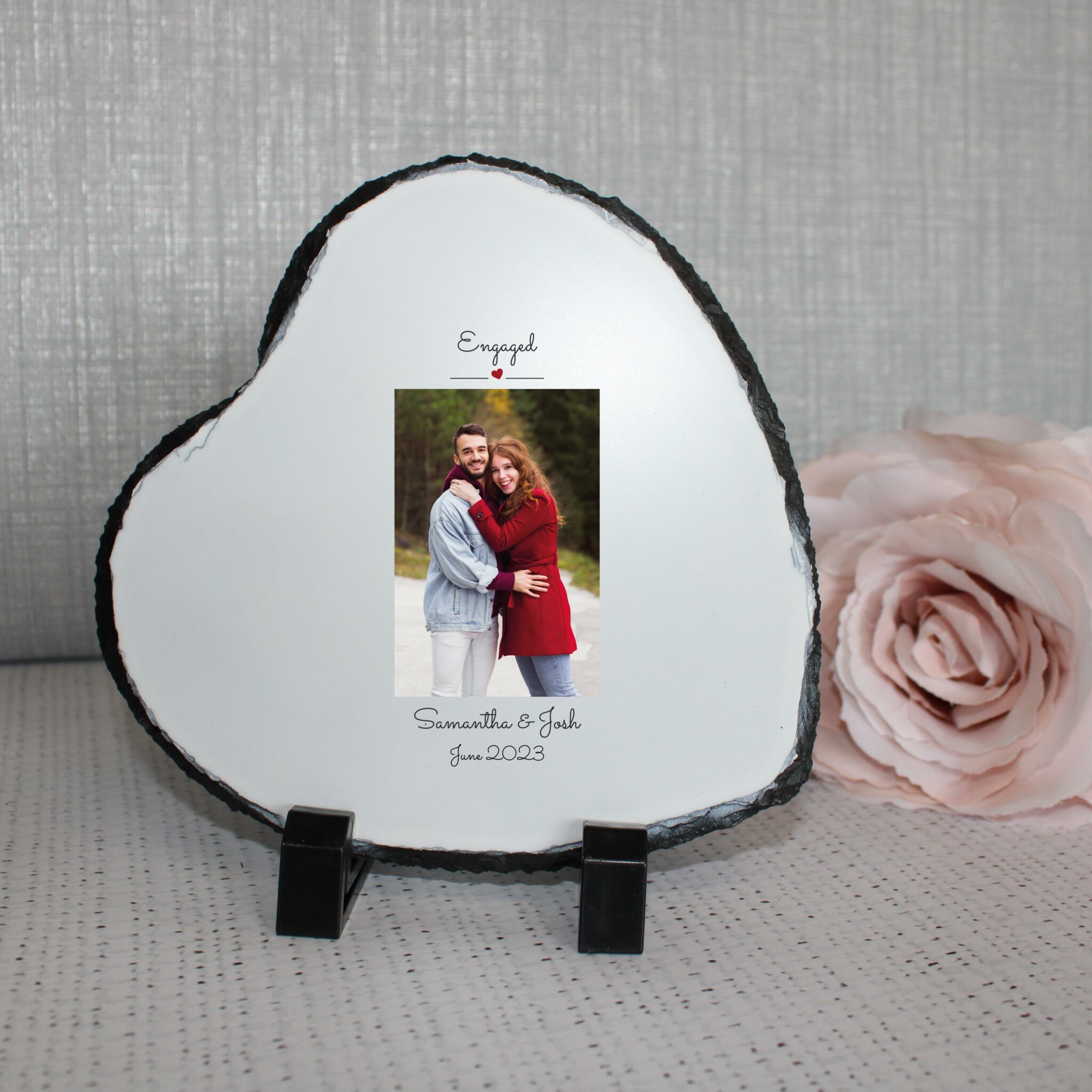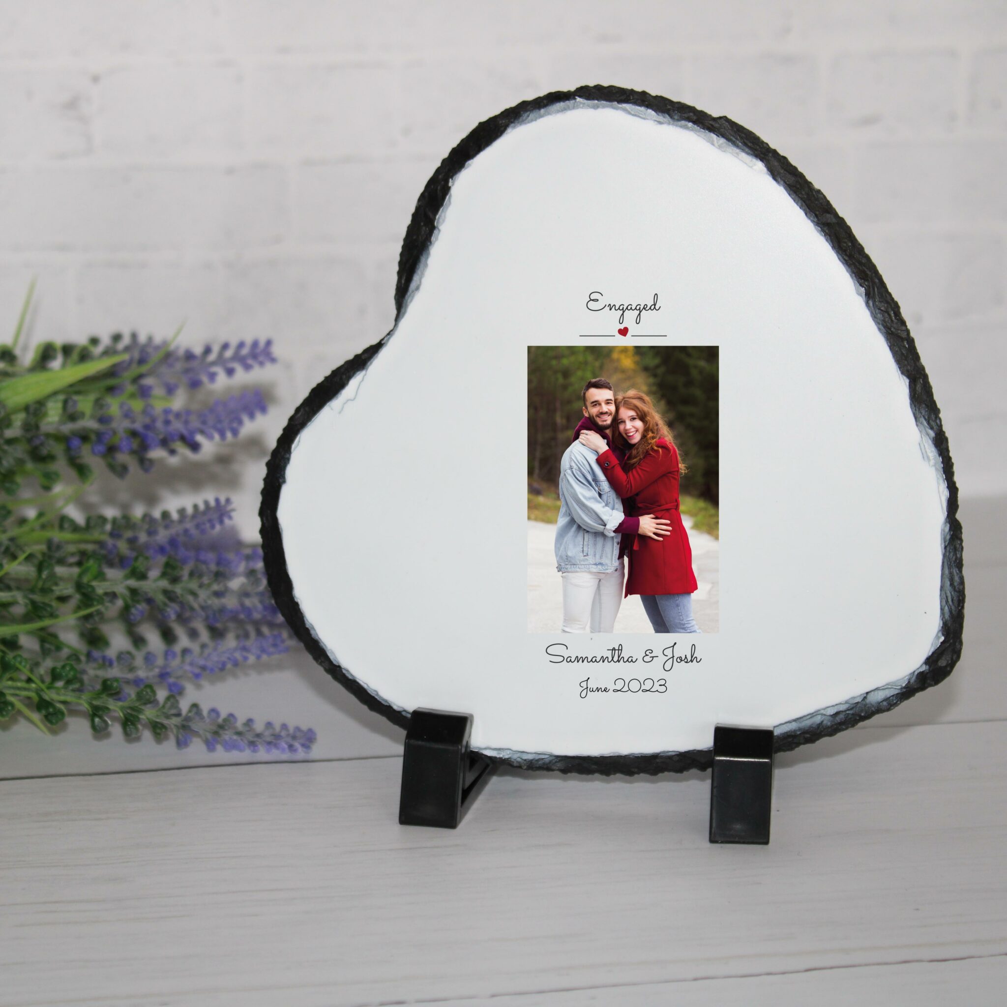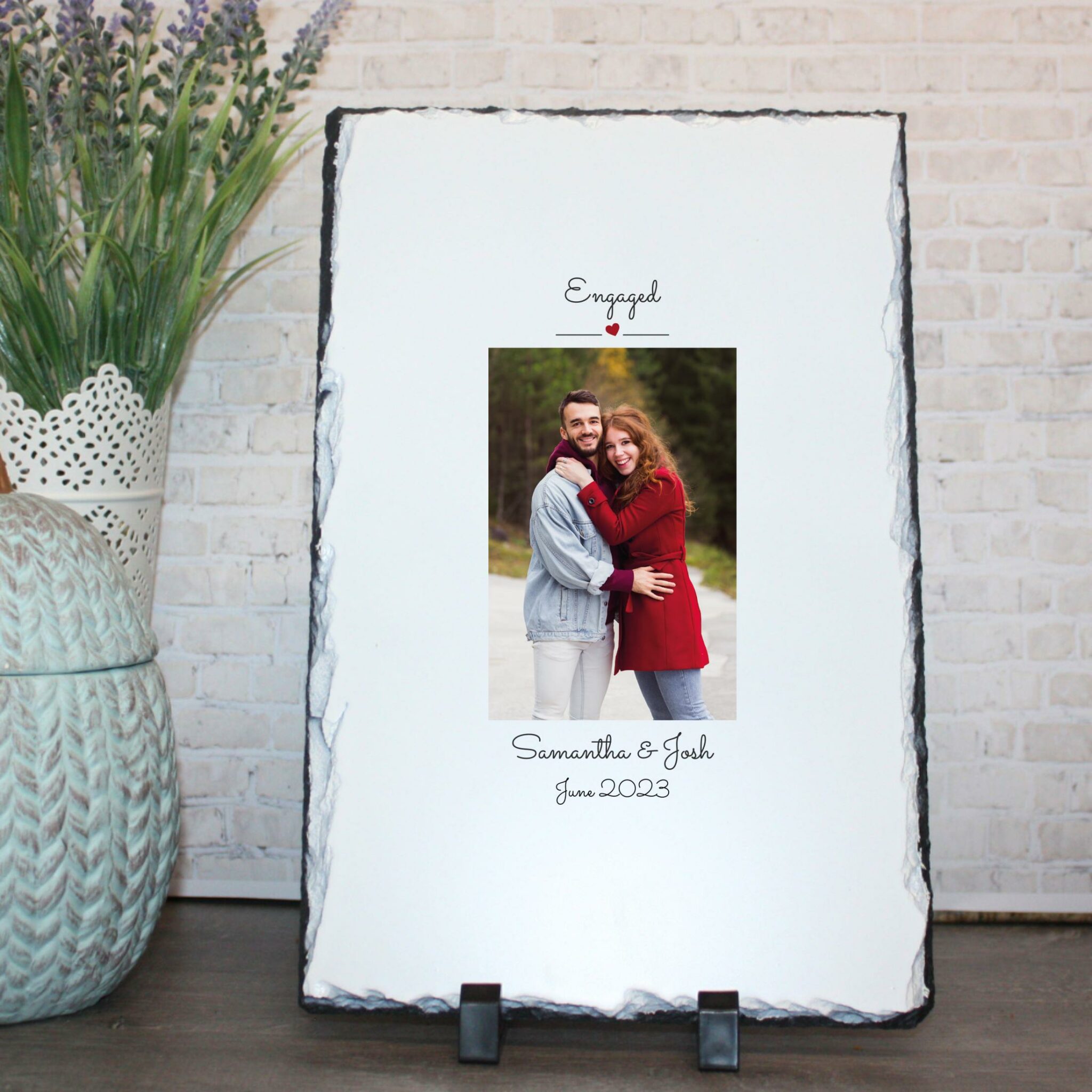Personalised Photo Slate – Engaged | Valentine’s Day Keepsake | Personalised Slate | Custom Plaque