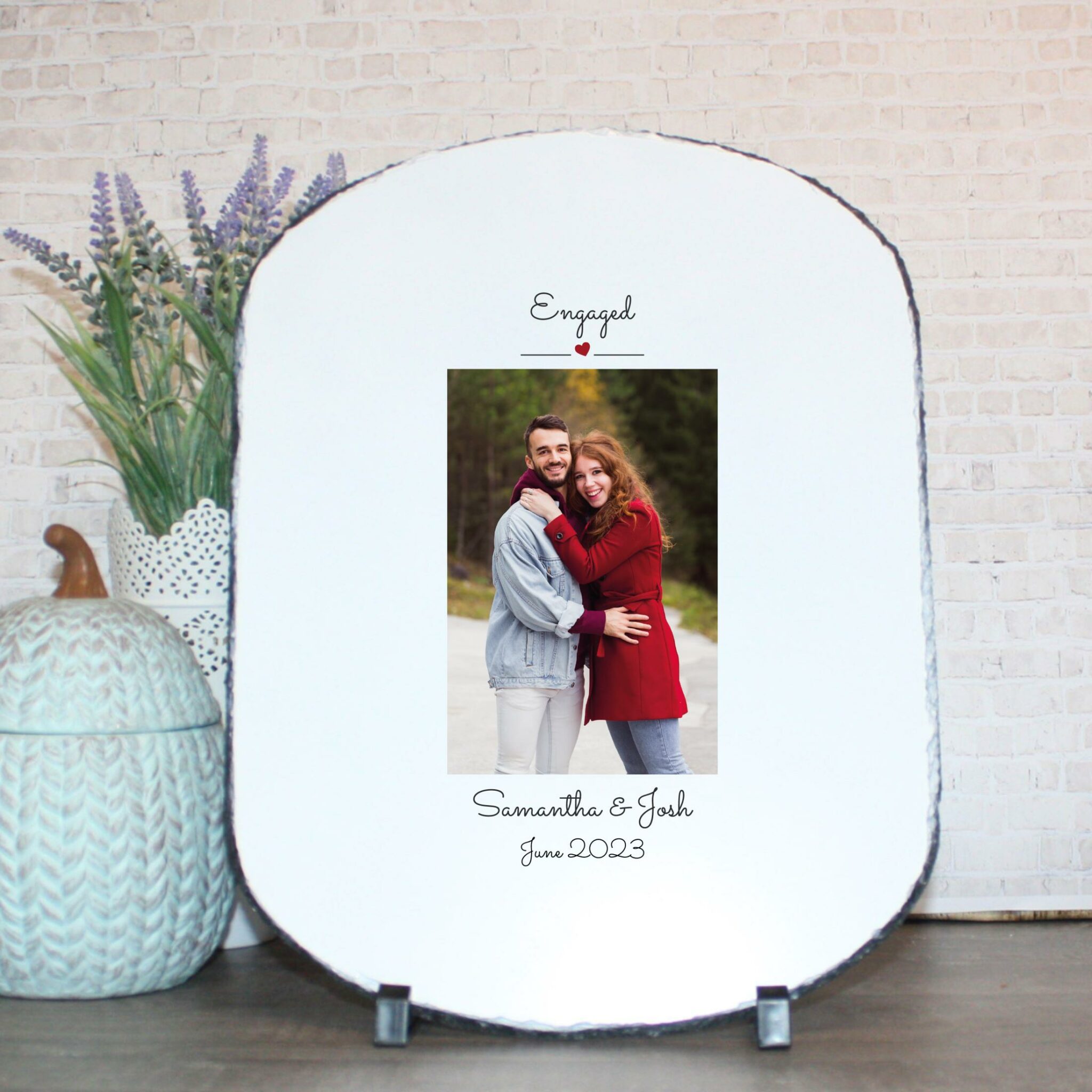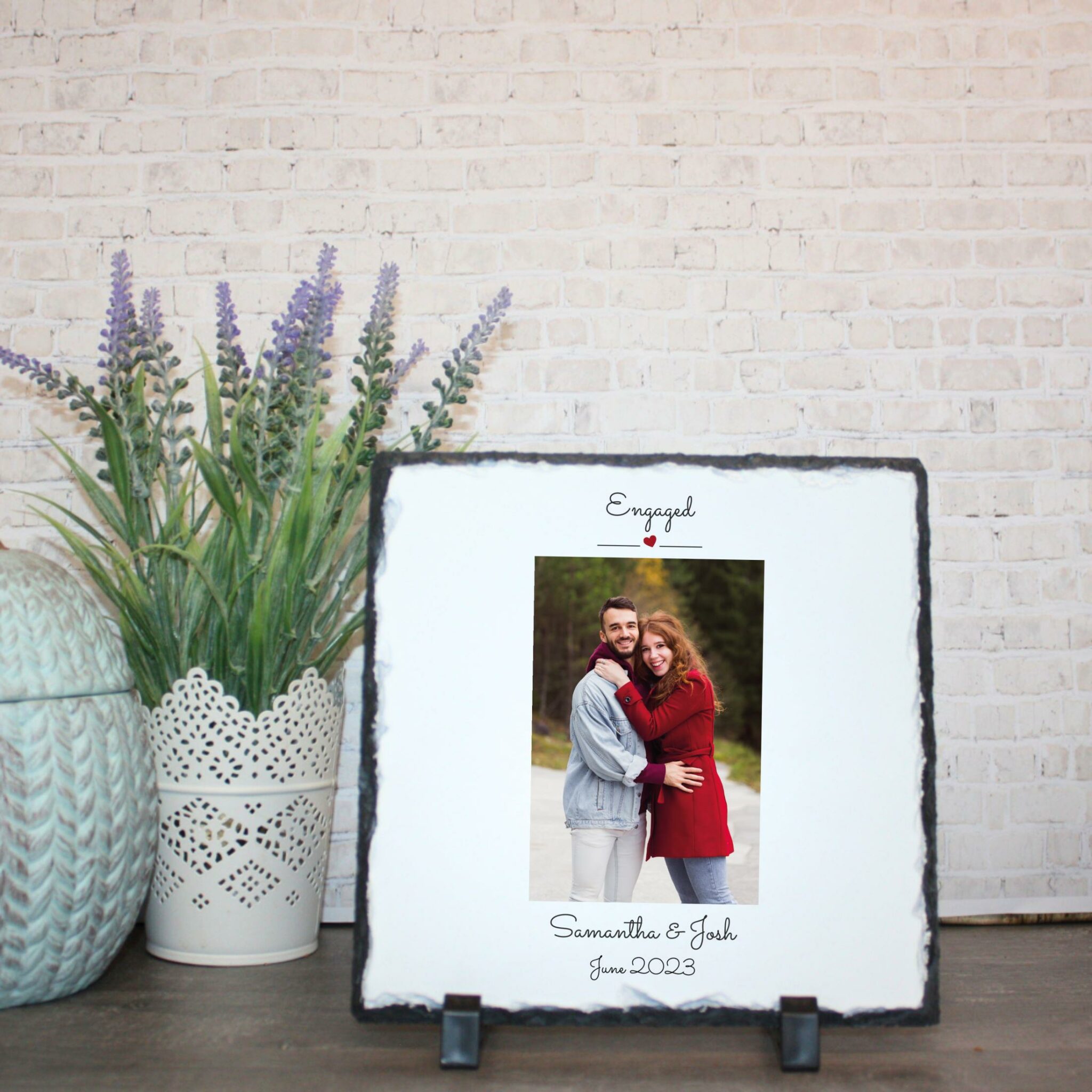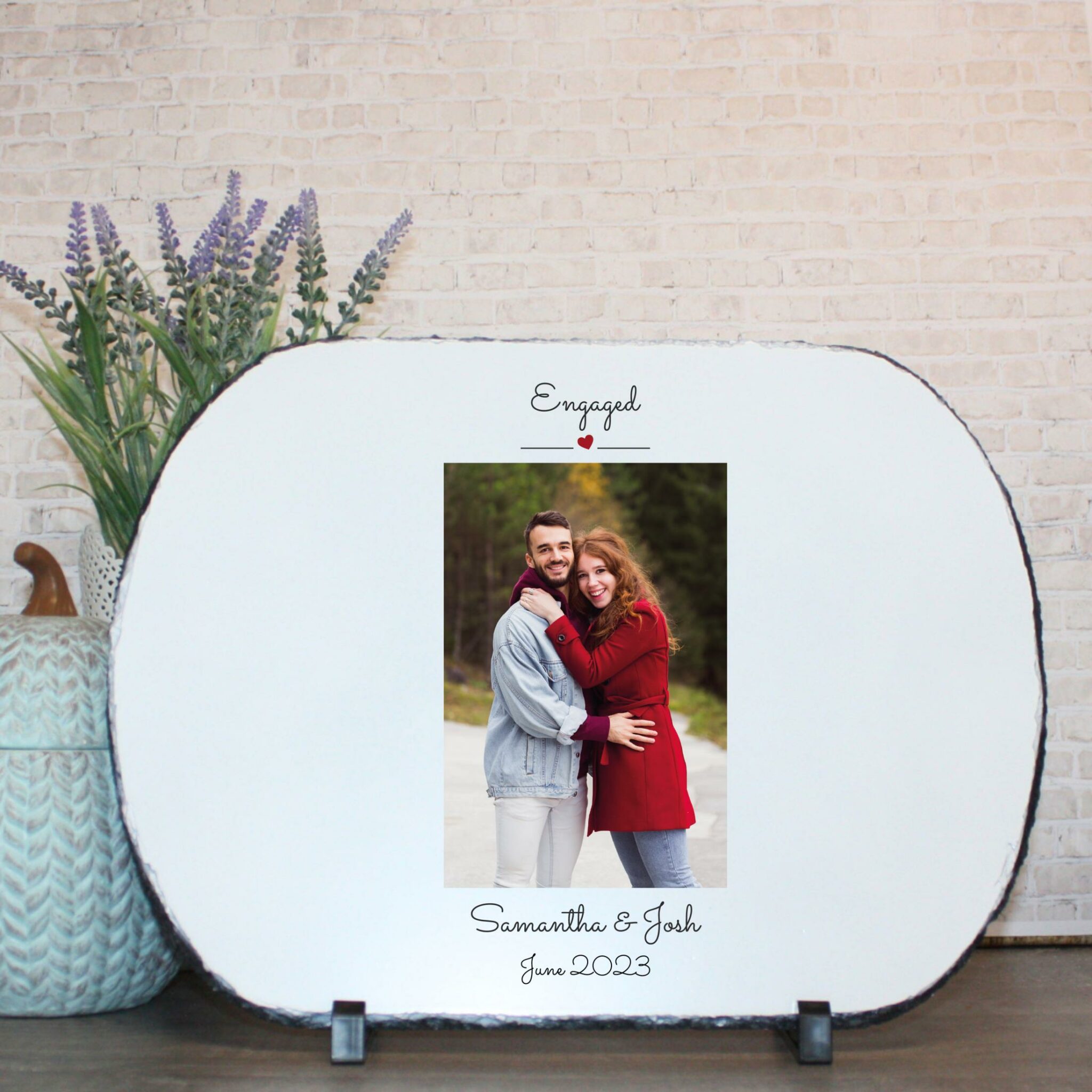 Personalised Photo Slate – Engaged | Valentine’s Day Keepsake | Personalised Slate | Custom Plaque