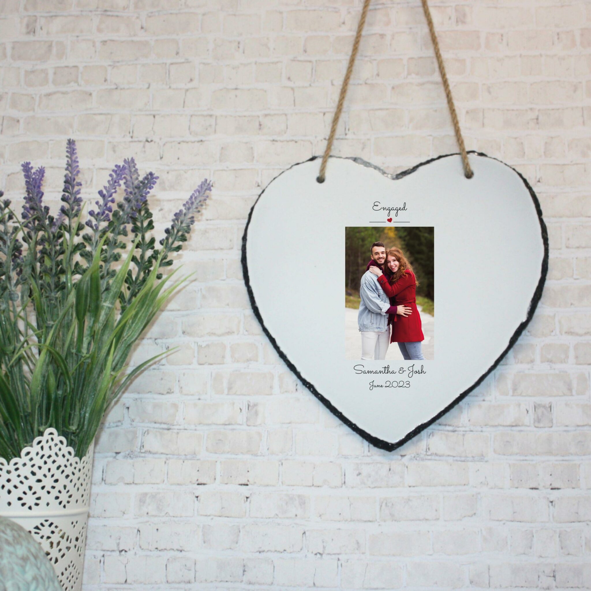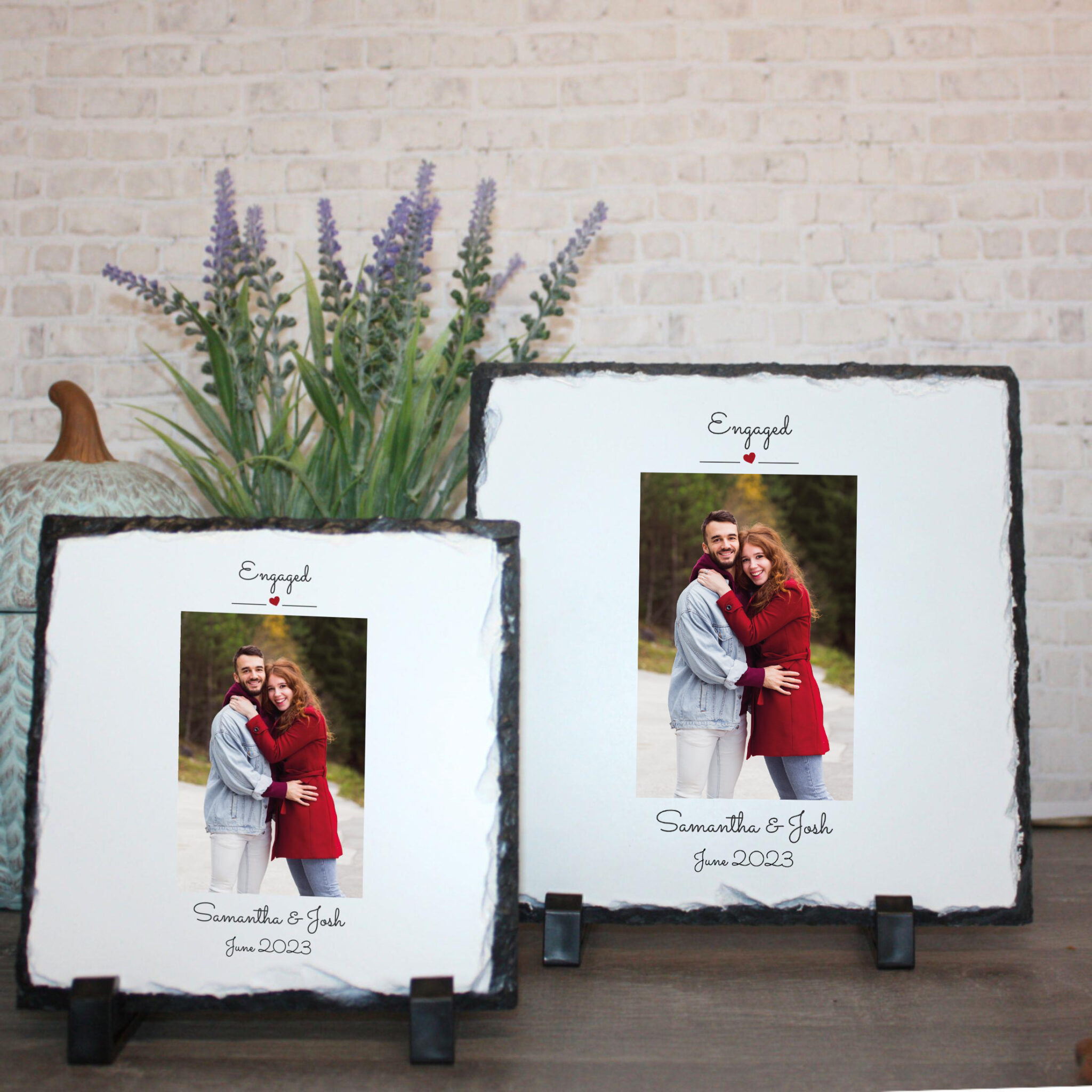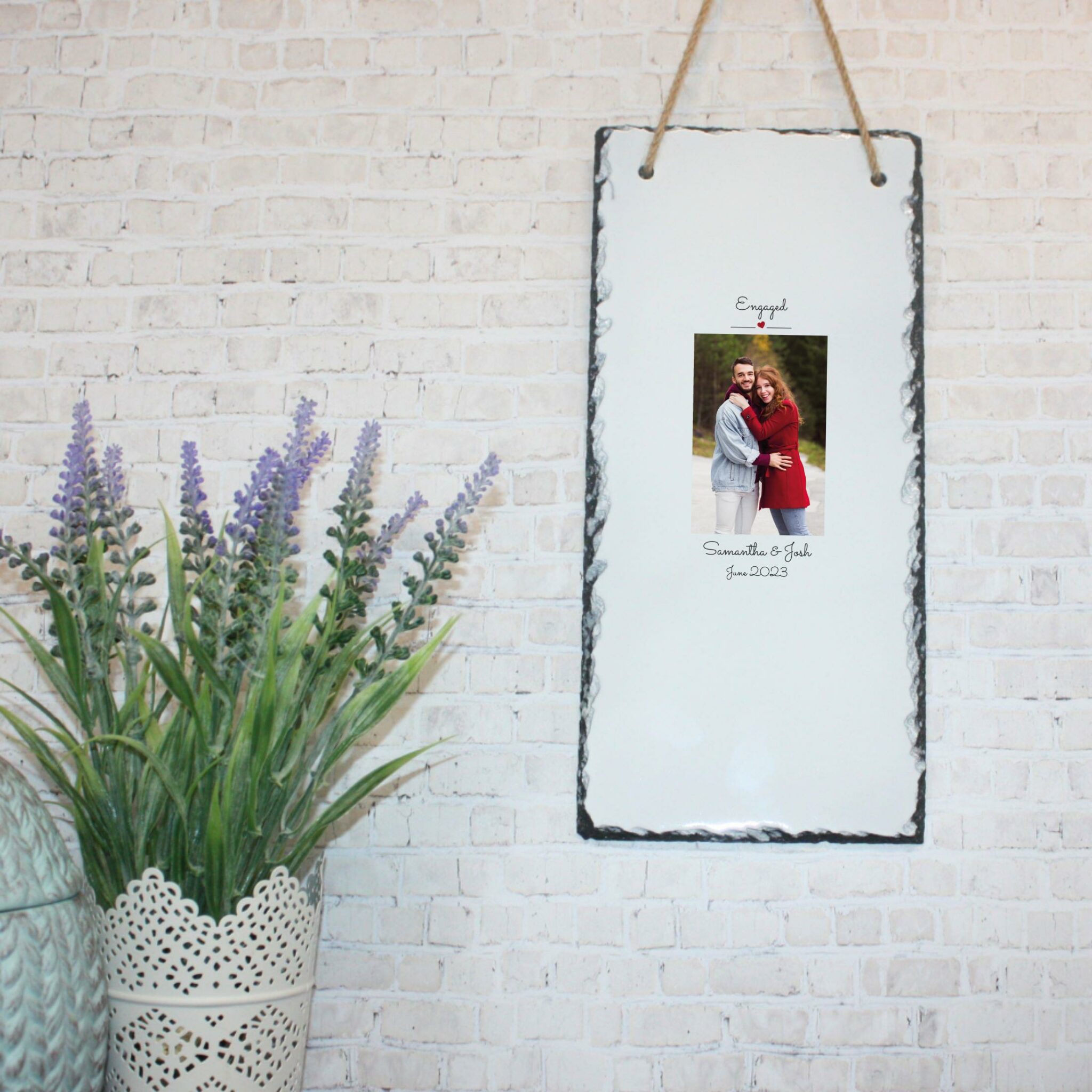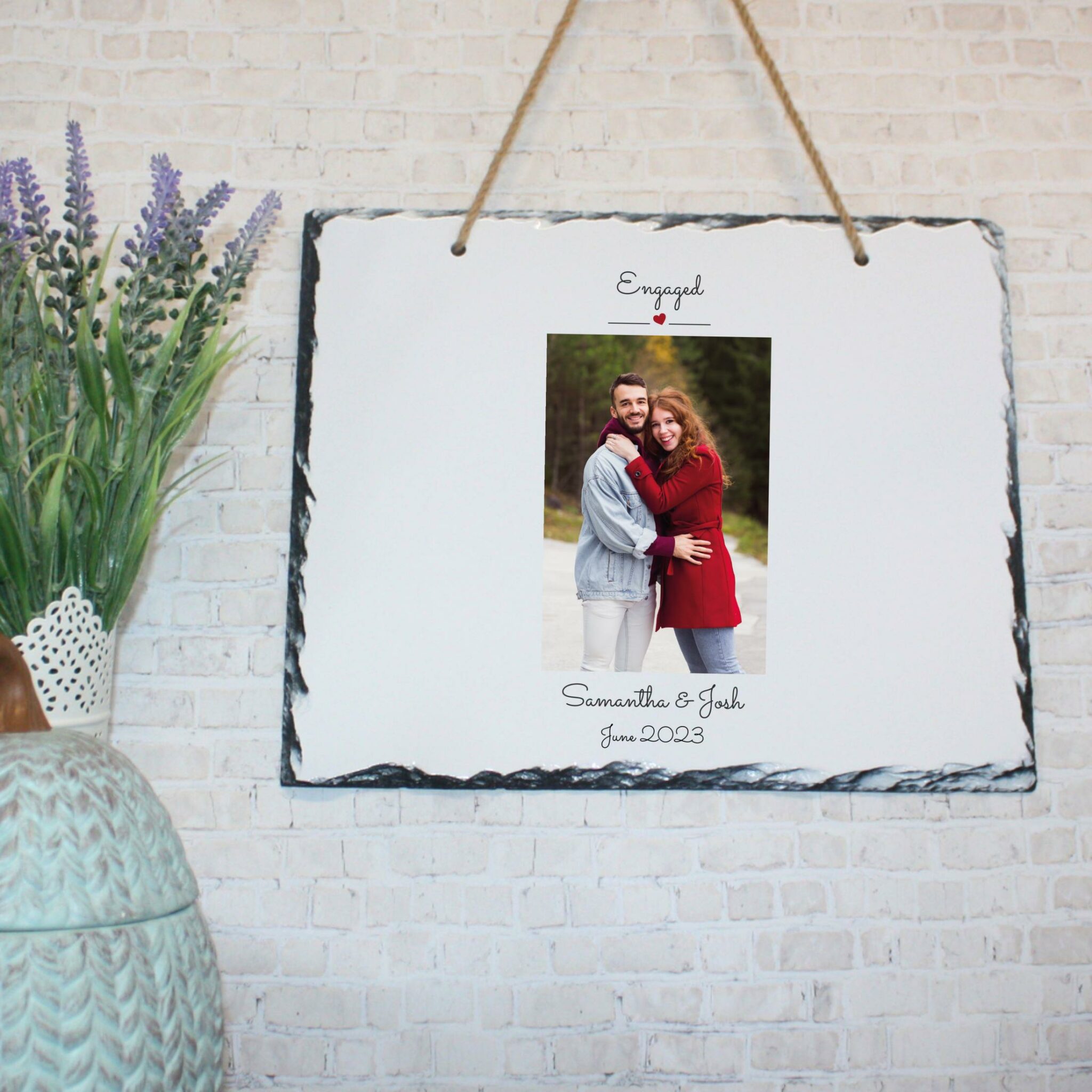 Personalised Photo Slate – Engaged | Valentine’s Day Keepsake | Personalised Slate | Custom Plaque