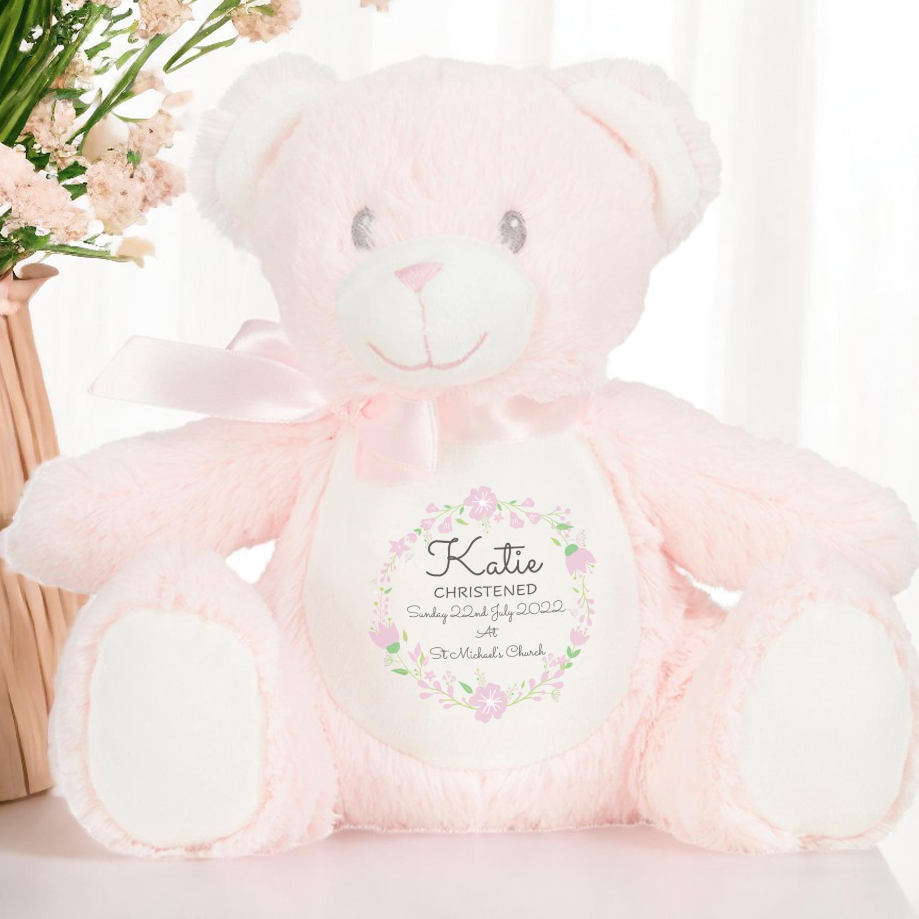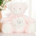 Introducing our exquisite Pink Christening Ring Plush Soft Toy from our collection of Soft Cuddly Toys, meticulously crafted to mark the joyous occasion of christenings and baptisms. Crafted from luxurious 100% Polyester plush fabric and standing approximately 22-26cm tall, these toys are the epitome of softness and cuddliness. Our Custom Plush Toys and Custom Soft Toys offer a personalised touch that makes them the perfect choice for commemorating this sacred celebration. Each toy can be customised with names and dates transforming them into cherished Keepsake Gifts that capture the essence of this special day. Designed as Personalised Teddy Bears, these Soft Cuddly Toys symbolise the love and blessings bestowed upon the recipient during their christening or baptism. They serve as tangible reminders of faith, love, and the joyous memories shared with family and friends during this momentous occasion. Make every christening or baptism even more memorable with our range of Personalised Gifts. Whether it’s a Christening Gift or a Baptism Gift, our Soft Cuddly Toys are sure to become treasured keepsakes, cherished for years to come as a reminder of this significant celebration.