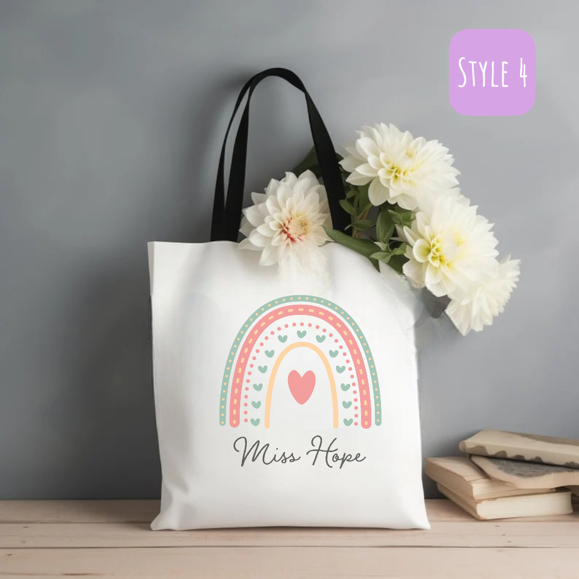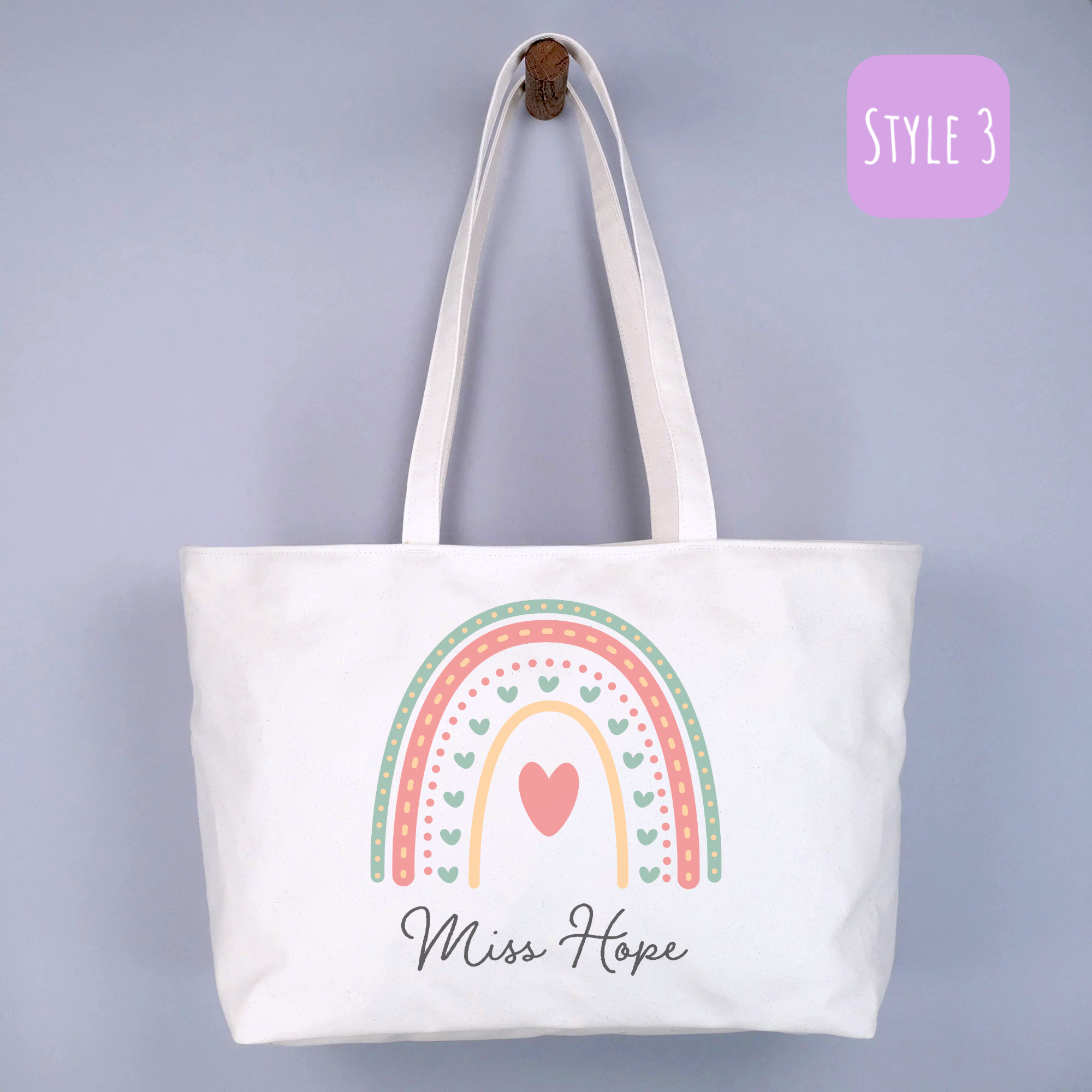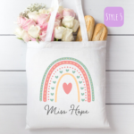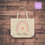Introducing our eco-friendly and stylish reusable Personalised Rainbow Teacher Canvas Tote Bag, a perfect blend of sustainability and fashion. Our collection is thoughtfully designed to cater to diverse preferences, offering different looks and sizes. Each style boasts a unique charm, ensuring there’s a perfect bag for every occasion and individual taste.