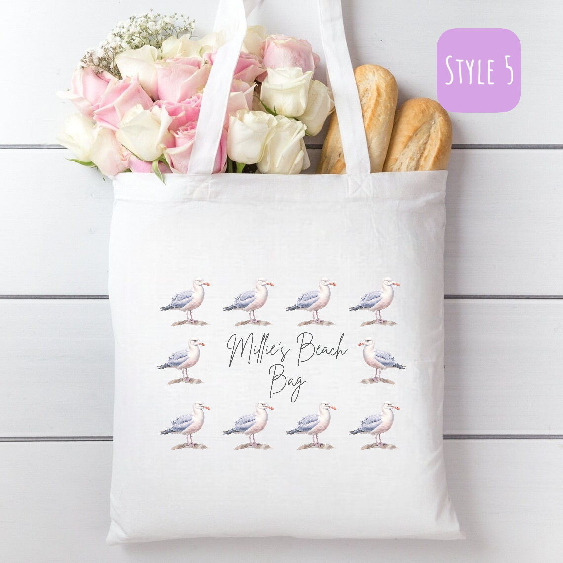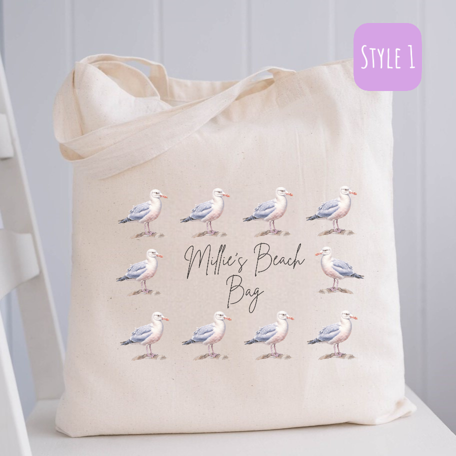 Personalised ‘Seagull’ Canvas Tote Beach Bag