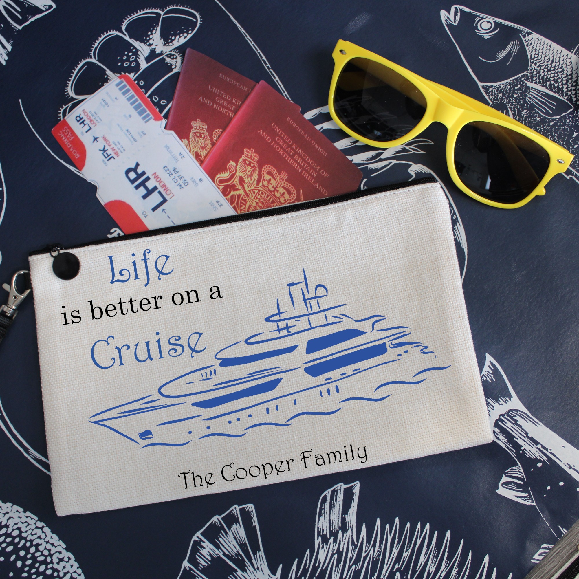 Introducing our Personalised Synthetic Travel Document Wallet, a must-have for every cruise lover. This elegant wallet features a detailed sketch of a ship with the caption “Life is better on a Cruise,” perfectly capturing the spirit of adventure on the open sea. Add your name or initials for a unique and personal touch.
