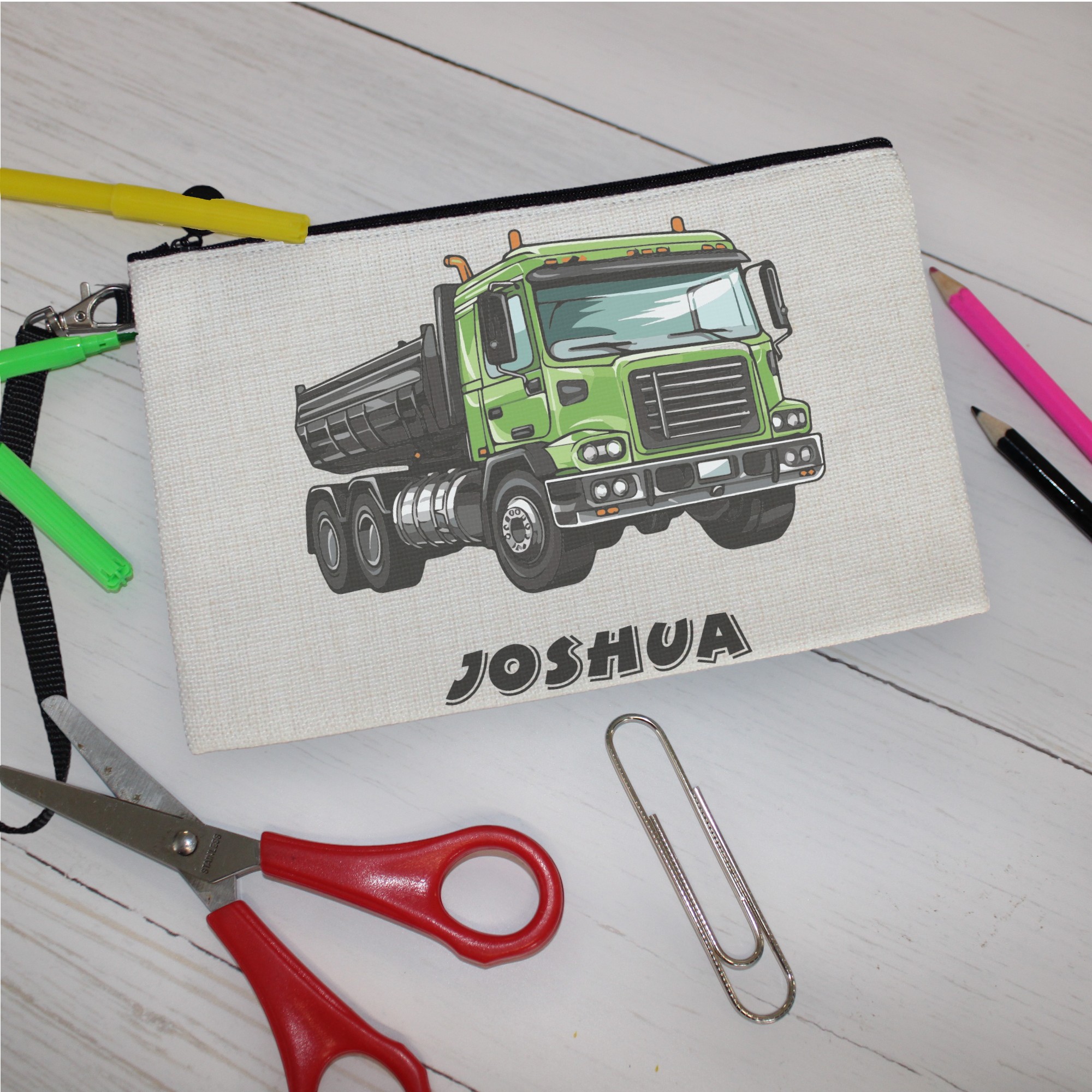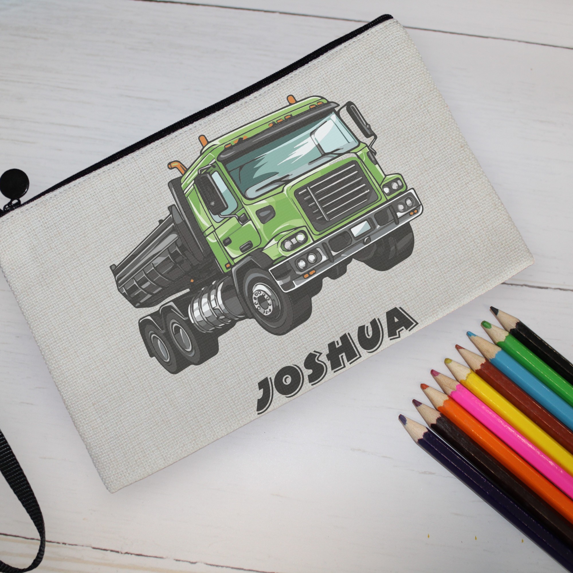 Personalised ‘Green Truck’ Pencil Case | Custom Pencil Case | Kids Pencil Case