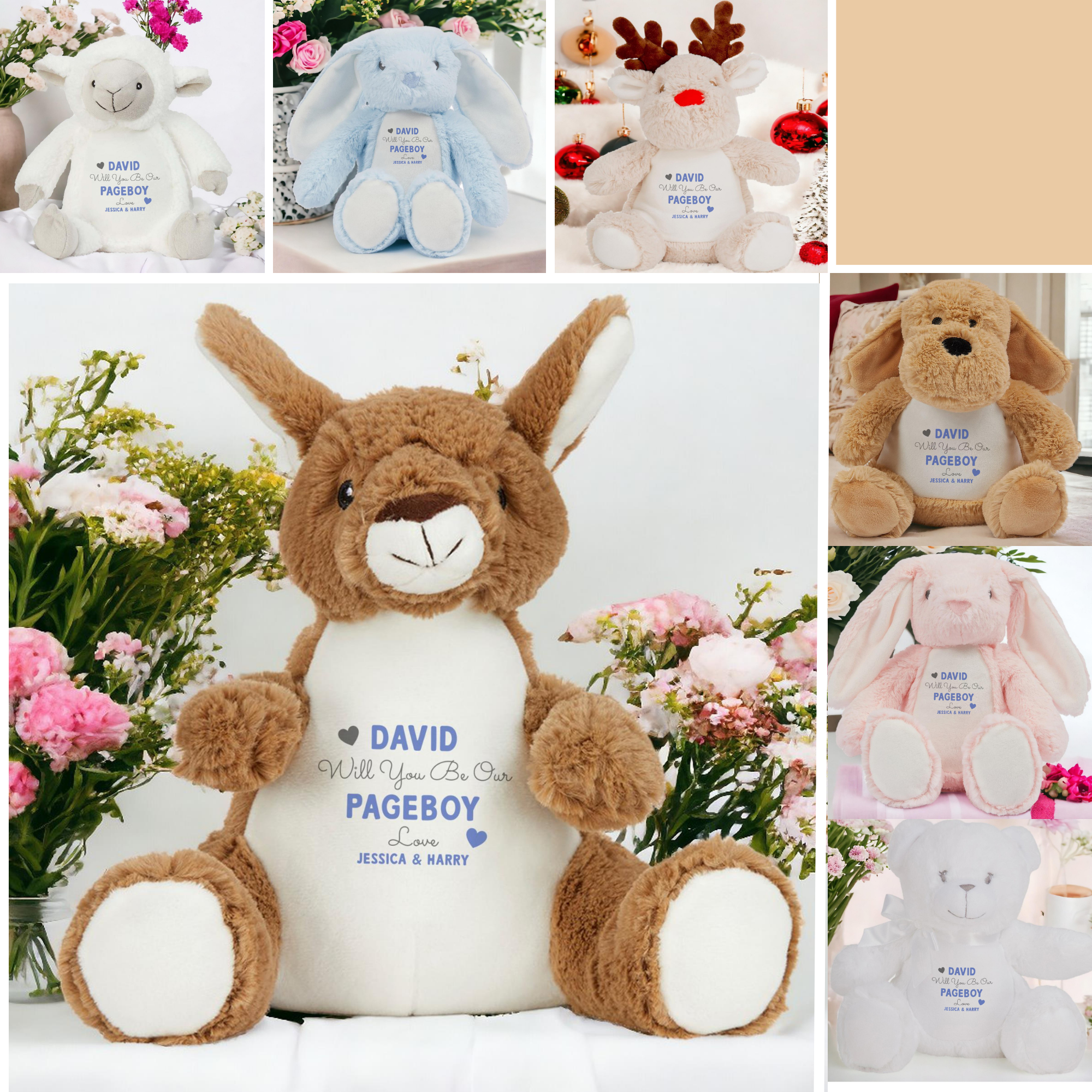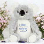 Introducing our charming Personalised ‘Will You Be Our Page Boy’ Plush Toy from our collection of Soft Cuddly Toys, perfect for adding a touch of personalisation to any occasion, including weddings. Crafted from plush 100% Polyester fabric and measuring approximately 22-26cm, these toys are irresistibly soft and cuddly. Whether you’re searching for Gifts for Girls, Gifts for Kids, or thoughtful Keepsake Gifts for special occasions like weddings, our Custom Plush Toys and Custom Soft Toys offer a unique and personal touch. Each toy can be customised with names making them more than just gifts; they’re cherished mementos of love and celebration. Designed with weddings in mind, our Personalised Teddy Bears are soft, cuddly, and full of charm and the perfect gift for a page boy, these toys are sure to be treasured keepsakes that bring joy and smiles. Make your wedding day even more memorable with our range of Personalised Gifts. From page boy gifts to wedding party favors, our Soft Cuddly Toys are sure to add a touch of sweetness and love to your special day.