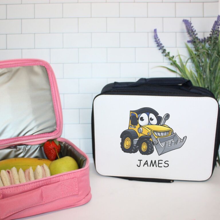 Personalised Yellow Digger Lunch Bag | Kids Insulated Lunch Bag | Lunch Bag