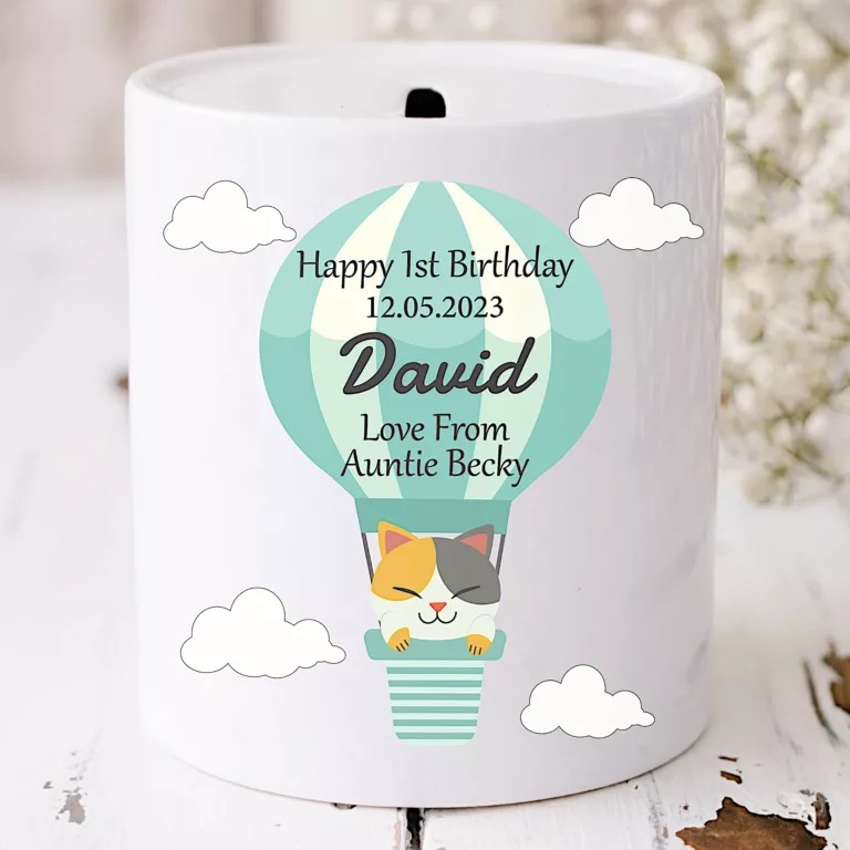 Personalised Air Balloon Money Box – Newborn Baby Gift – Balloon Nursery