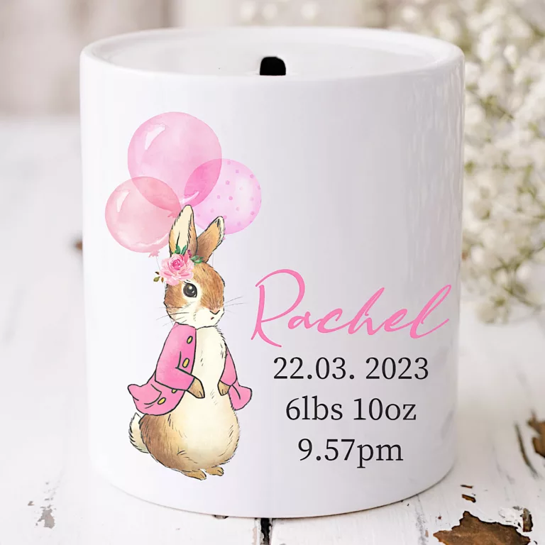 Personalised Born in 2024 Money Box- Flopsy Rabbit Money Box – New Baby Gift