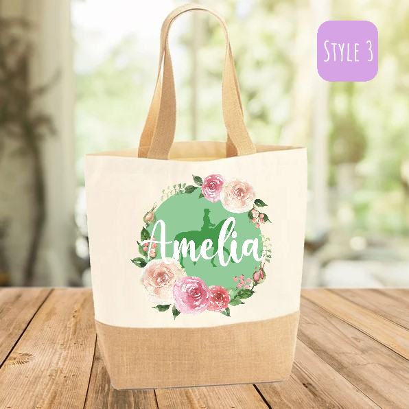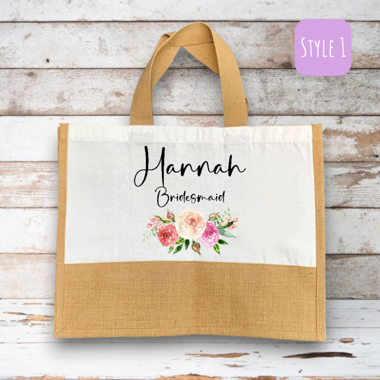 Personalised Bridesmaid with Flower Motif’ Canvas Shopping Bag