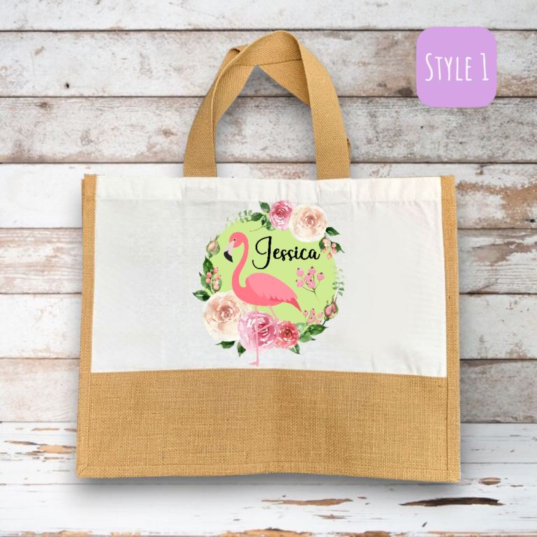 Personalised ‘Flamingo in Flower Wreath’ Canvas Shopping Bag