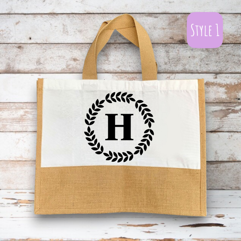 Personalised Leaf Ring with Monogram Canvas Shopping Bag