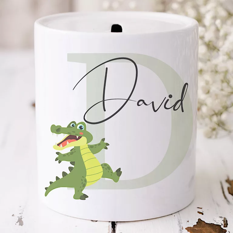 Dinosaur Money Box – Dinosaur Nursery Decor – Personalised Gift – Baby Boy Gift