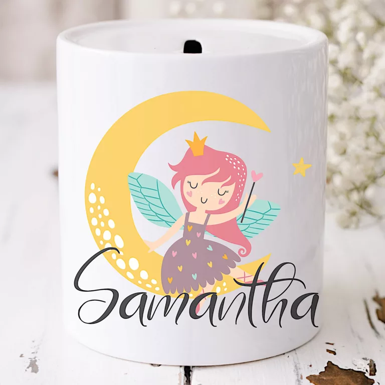 Personalised Money Box – Fairy Moon Name Savings Money Jar For Girls