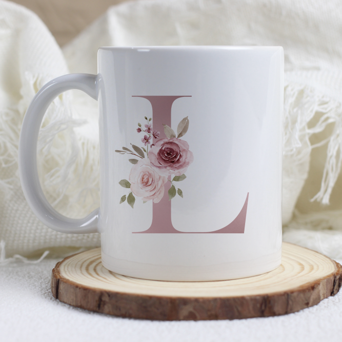 Personalised Initial Letter Coffee Mug Dusty Rose