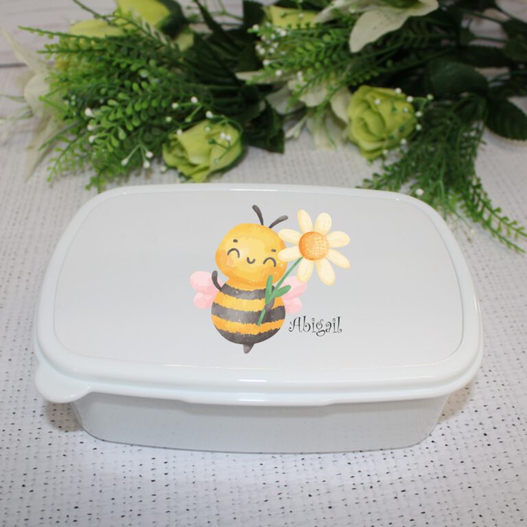 Personalised Flowery Bee Lunch Box | Custom Lunch Box | Sandwich Box