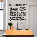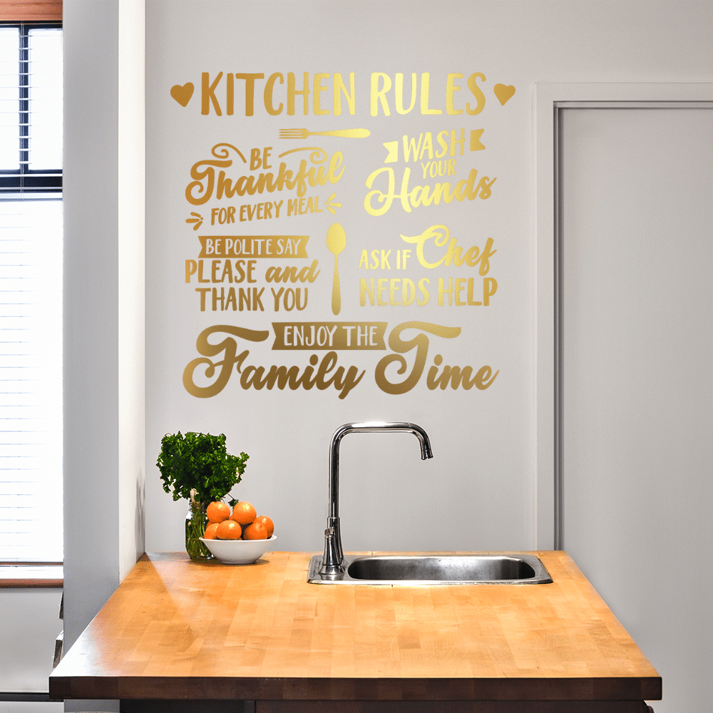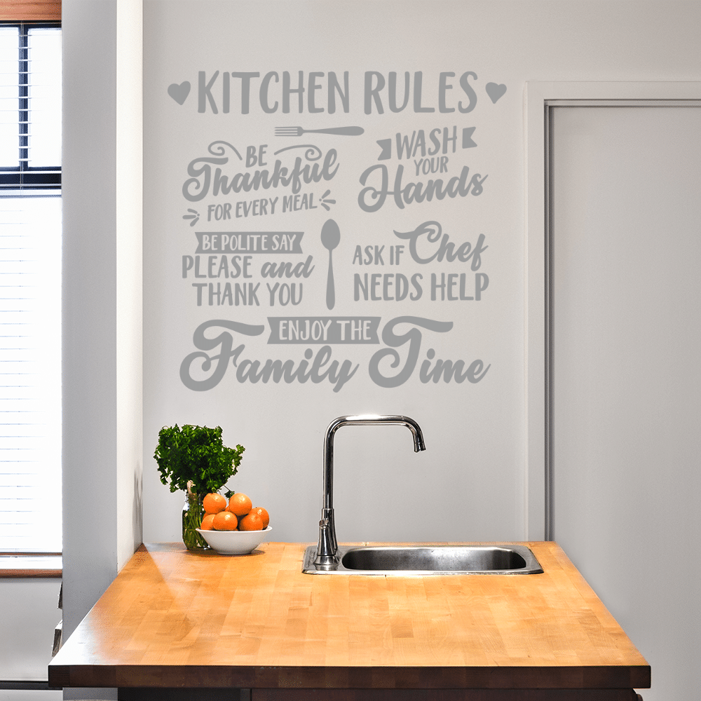 Check out this cool wall decal ” Kitchen Rules” Create a space that reflects you with something special. All our wall decals are made with Premium Quality Vinyl, ensuring a long lasting finish to any wall, may it be a Office, Barbers, Salon or Gym. No white or transparent edges, so the decal appears like part of your wall. Easy application