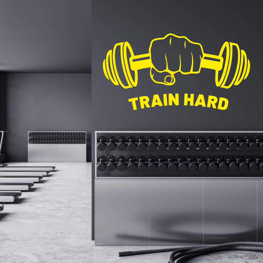 Get massive with this HUGE Gym wall Decal quote for your wall like our ‘Train Hard‘ Vinyl Decal Wall decal .